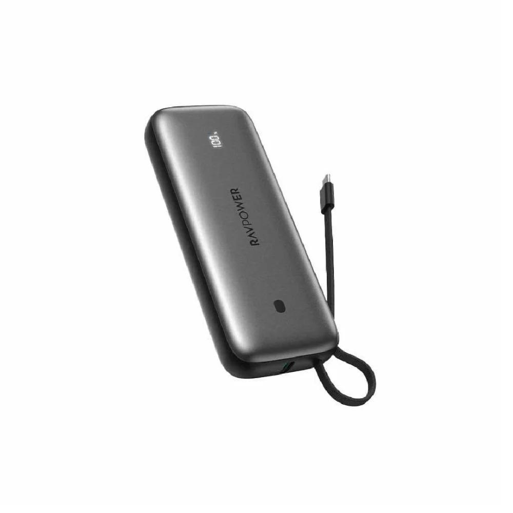 راف باور - بطارية بقوة 35 واط بسعة 20000 ملي امبير مع سلك مدمج تايب سي ومنفذ تايب سي ومنفذ يو اس بي - اسود