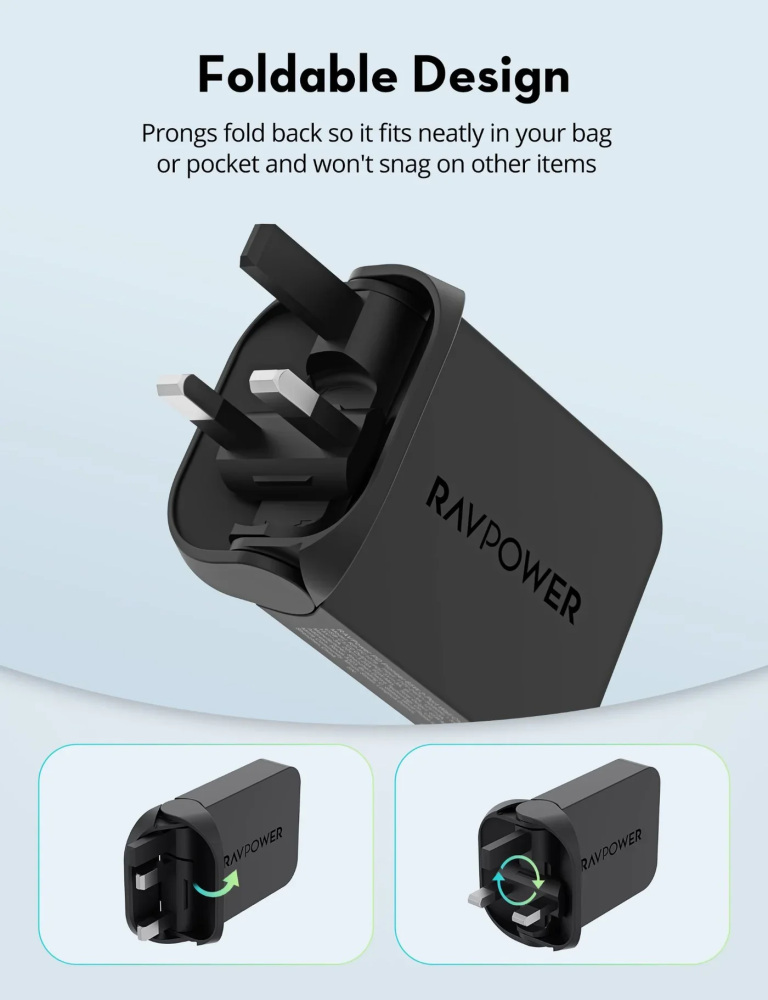 شاحن جداري راف باور نحيف بقوة 35 واط منفذ تايب سي - اسود