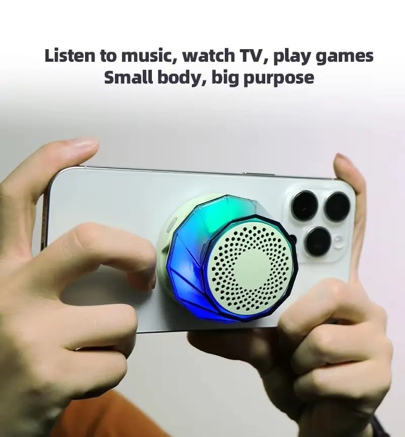 مكبر صوت لاسلكي مغناطيسي ZQS-P15 مع عرض إضاءة RGB وحامل هاتف