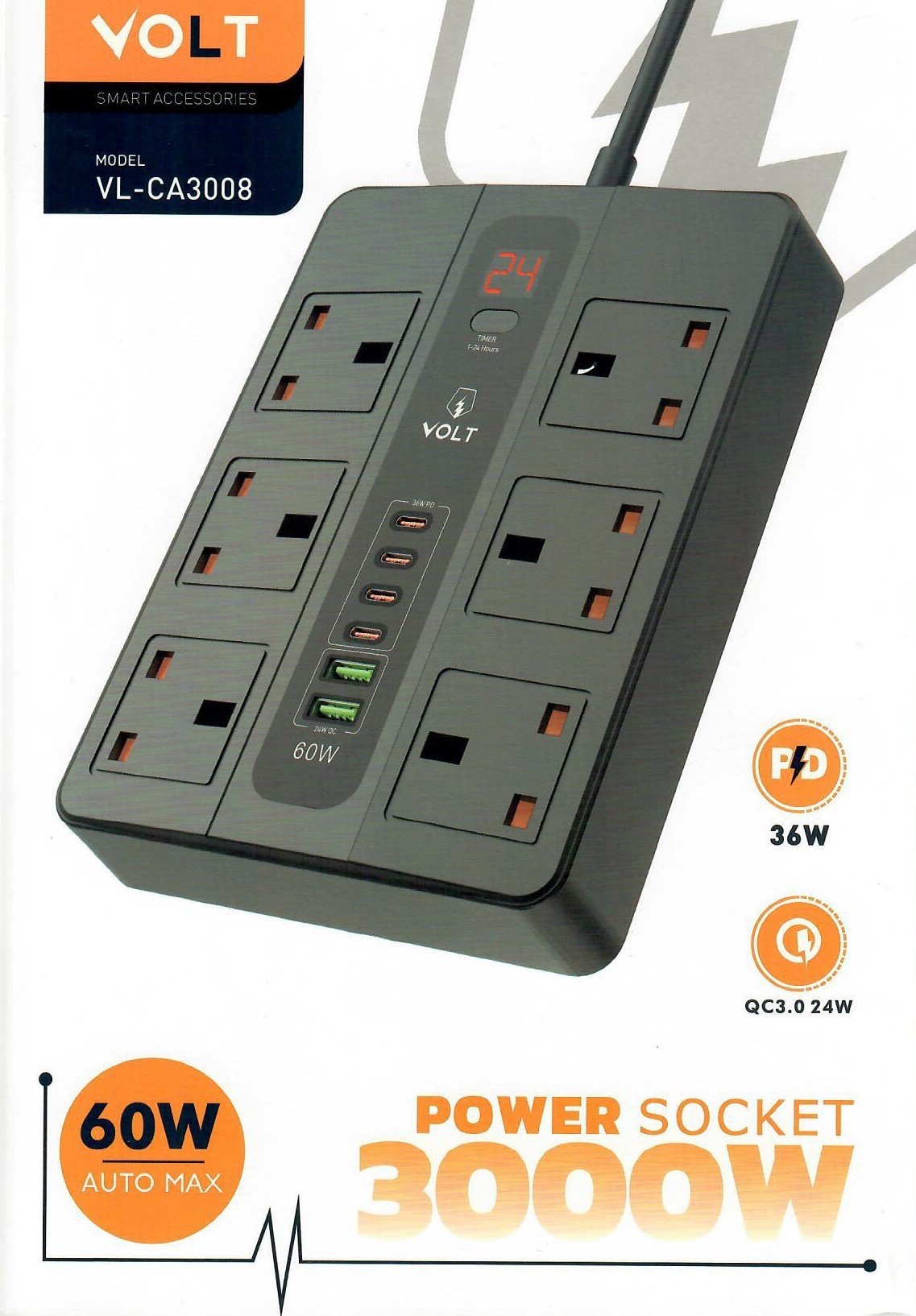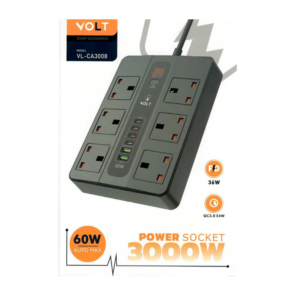 توصيلة كهرباء ذكية 3 متر مع مؤقت تشغيل و 5 منفذ ومنفذ PD من فولت
