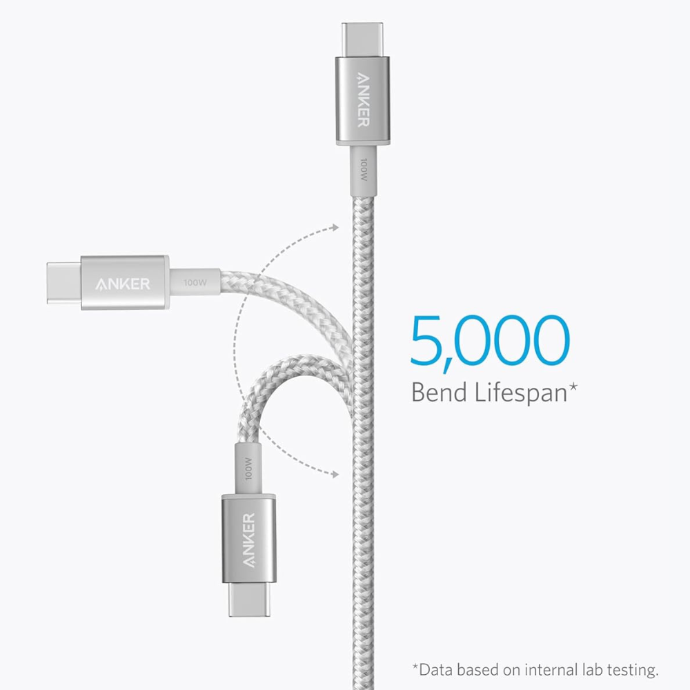 تمتع بشحن سريع ونقل بيانات موثوق مع كابل Anker USB-C إلى USB-C بقوة 100 واط. يتميز بتصميم مضفر من ألياف النايلون عالية الجودة ليمنحك قوة، مرونة، وعمر استخدام طويل، مما يجعله الخيار المثالي للاستخدام اليومي. متوفر الآن ضمن أفضل العروض!