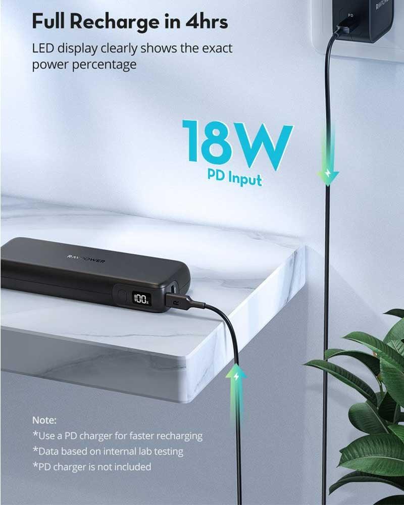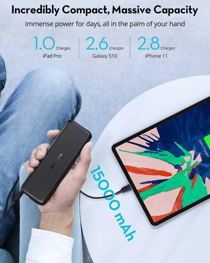 بطارية راف باور بايونير بسعة 15,000 ملي امبير وتقنية PD للشحن السريع