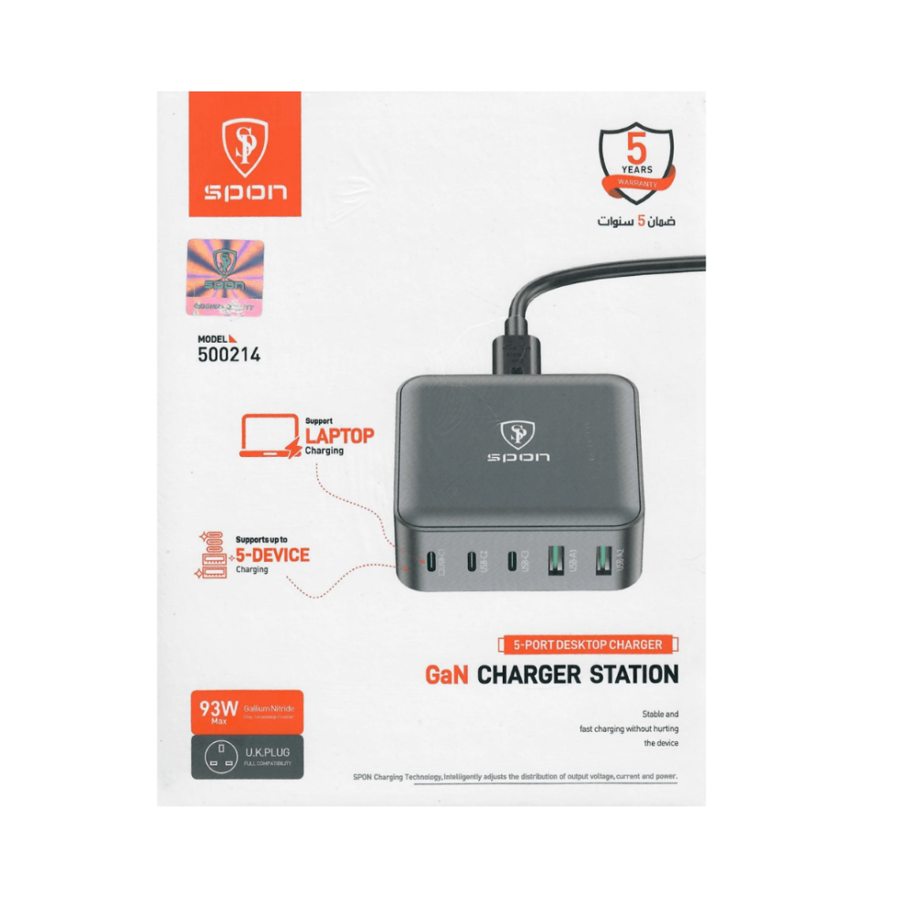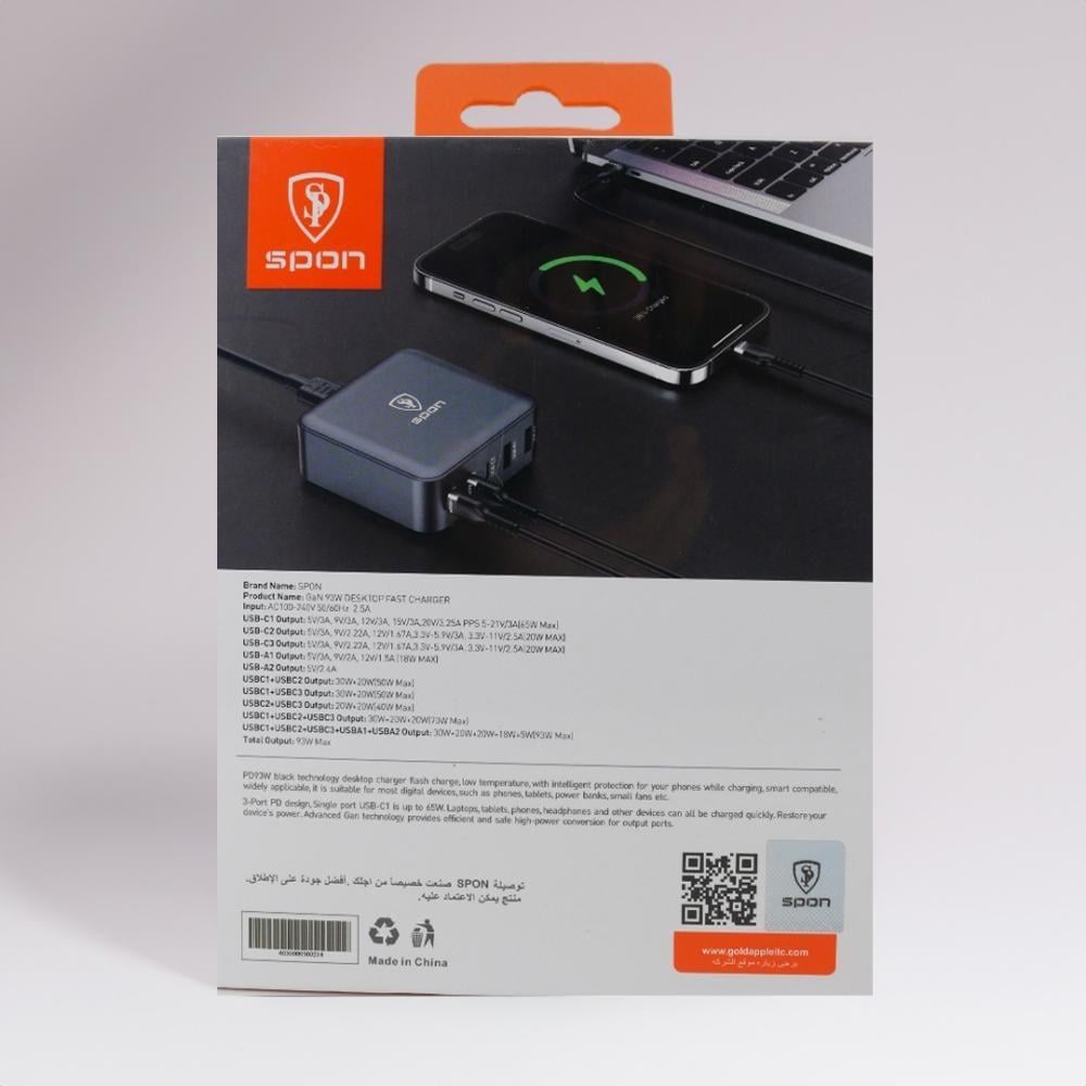 - قدرة عالية: بقدرة 93 واط، يمكنه شحن الأجهزة الكبيرة مثل الحواسيب المحمولة بسرعة.