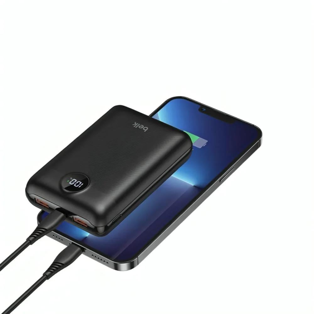 Belk - Power Bank with 2 USB Ports and 1 Type-C Port with Fast Charging Capacity 20000mAh with a Screen Displaying the Power Bank Battery Percentage